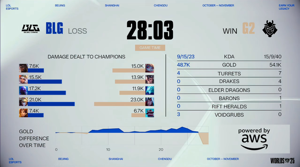 S15全球总决赛:先赢后输!G2击败BLG,亲手将BLG推至悬崖边