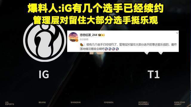 关于这个问题,LPL知名爆料人“恋恋红茶”在网上透露说:“IG有几个选手已经续约了,管理层对留住大部分选手的事还挺乐观的,最终落地情况看转会期吧。”