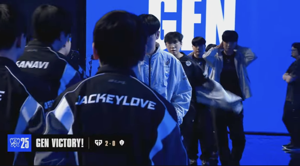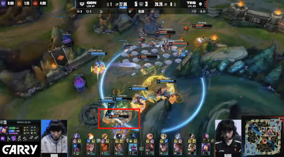 第二局的画面其实跟第一局差不多,TES的阵容在我看来是绝对比GEN更好的,对线期也有抗住,做到了平线发育,可一涉及团战,TES的团战智商就直线下降,第二条小龙团被GEN完成1换5团灭后,后续也抓住GEN在边路的失误,完成0换2,尤其是将chovy这个大赏金给到了369的兰博,但之后再次对chovy动手却被GEN及时的支援反打葬送多人,阵容的加持也让TES打出过几波比较高光的团战,可还是那个问题,团队之间的技能衔接非常有问题,之后也是越打劣势越大,最终的中路团战,TES已经击杀对手一个人的情况下,creme冒进冲进后排直接被融化,TES瞬间溃败GEN完成一波。