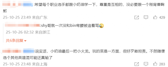 这个“弯不弯腰”的事情,也给Bin大哥造成了不小的舆论压力:“bin咋天天不弯腰啊,别的选手可能找半天就一两把没咋弯腰,bin好像都找不到有弯腰的时候”,“希望每个职业选手都跟小奶油学一下,尊重是互相的,没必要跟一个刚背兽鞠躬”,“污渍当年都没狂成这样,Bin凭什么啊”……