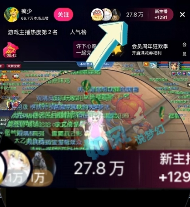 梦幻西游:旭旭宝宝队伍拿下比武冠军,风少直播间人数27.8万