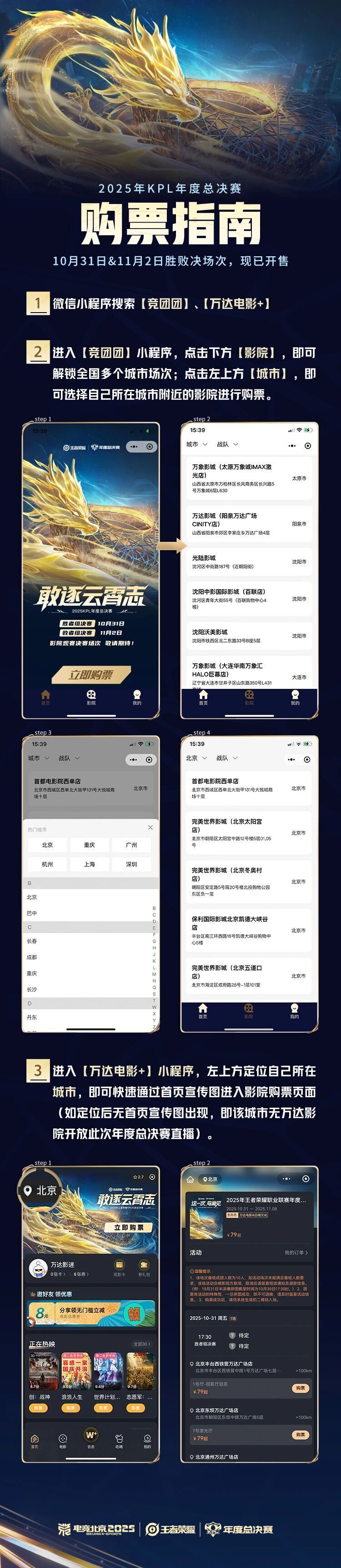 官方影院观赛城市以最终开票为准,观众们可以前往【竞团团】、【万达电影+】小程序展示的官方授权合作影院购票观赛,其余未在名单之列的影院为未经授权影院,直播本场比赛属于侵权行为。