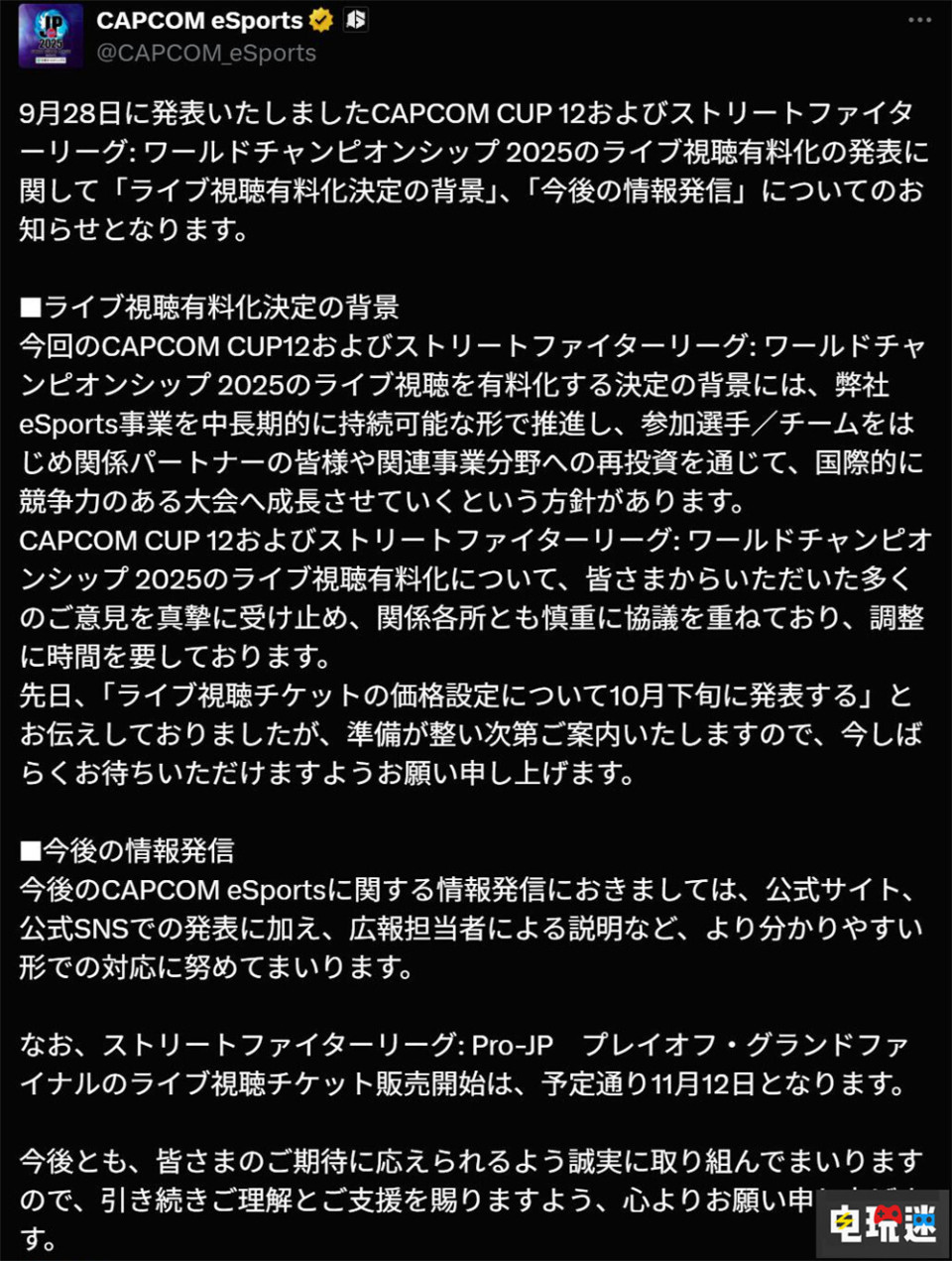卡普空的街头霸王联赛2025世界锦标赛以及Capcom Cup 12总决赛在今年9月份宣布将采用付费直播模式,这令大量玩家与业界人士感到意外,并且引发赛事观众的大量反对。然而卡普空依旧宣布将会继续维持该付费计划。