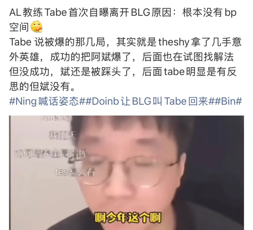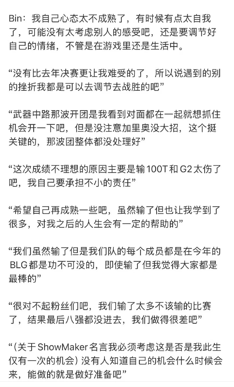 Bin主动承担责任,输欧美自己问题,Tabe曝离开BLG原因