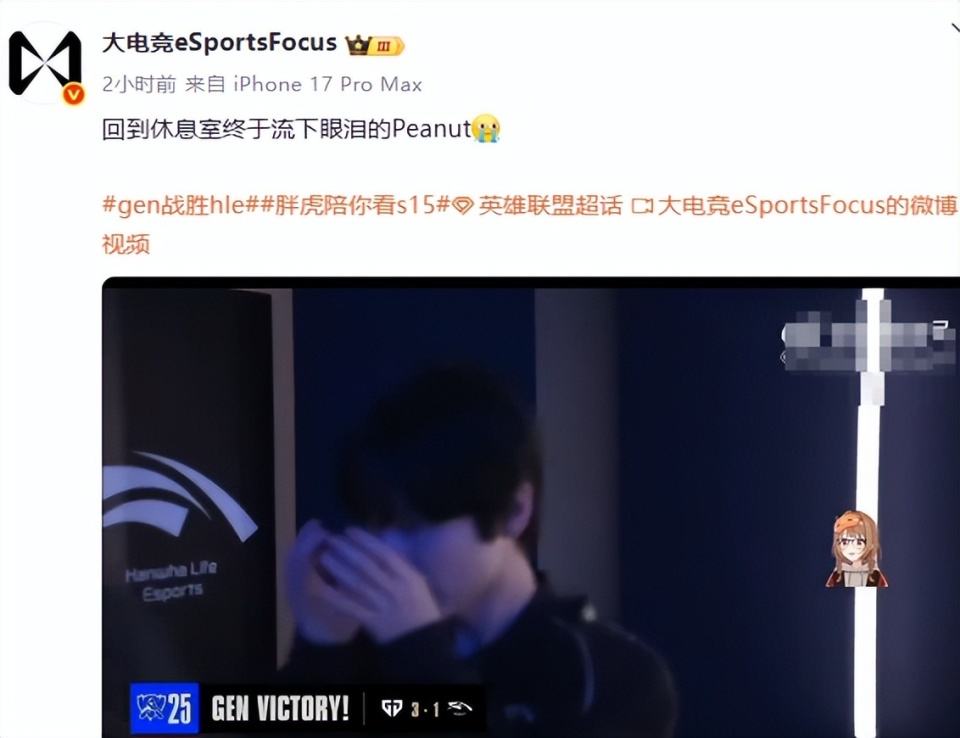 再见了小花生,祝福未来一切都好,只能说HLE的队友们对不起小花生的努力,宙斯估计也后悔离开T1了吧。话说,GEN这么强,不会真的夺冠吧,AL给我冲。