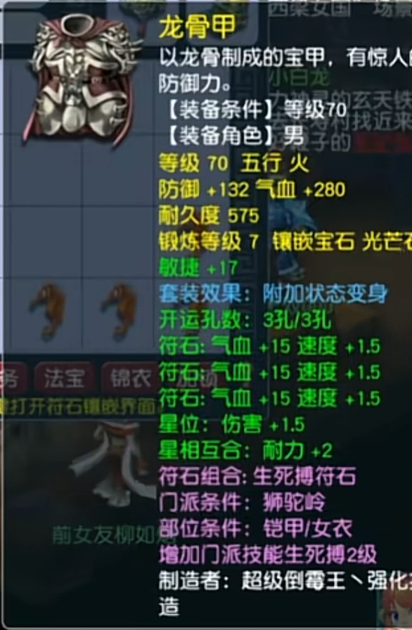 这件也非常稀少因为是鉴定出来的变身衣服,初防+132,敏捷+17,自带变身套。