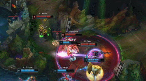 团战打赢之后AL野区抓到机会绕后TP先手德莱文成功再次击杀Gumayusi,一波打出一换二,T1兰博无法支援,强势中断Gumayusi的节奏。
