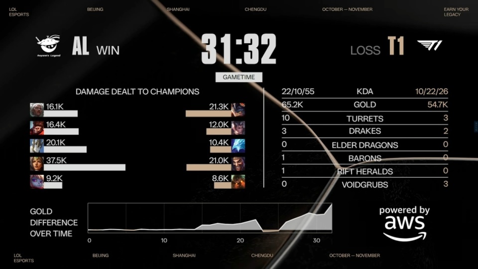 在这样的情况下Faker的一手中单冰鸟就直接尬住了,没有发挥出效果,Gumayusi的一手德莱文尝试从下路突破也被AL轻松化解,比赛也进入到关键的天王山之战,希望AL能保持第二局的状态,争取拿下赛点。