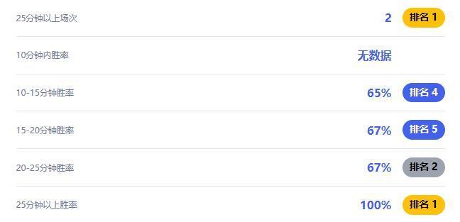 作为老对手,只能说AG确实非常了解WB,因为WB确实是一支打后期的队伍,哪怕前期逆风,只要给到WB足够的发育时间,它就可以利用团战将优势打回来,因为在年总,WB打赢了两场25分钟以上的对局,排在全联赛第一的位置,其20至25分钟获胜的对局也排在了联赛第二的位置。