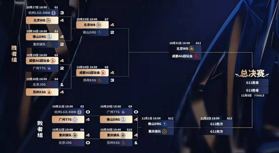 本届年总四强战队北京WB、成都AG超玩会、佛山DRG、重庆狼队将对最终两个前往鸟巢的资格展开争夺!今日18:00,胜者组决赛即将打响,北京WBvs成都AG超玩会,谁能成为首位去往鸟巢进行决赛的队伍?