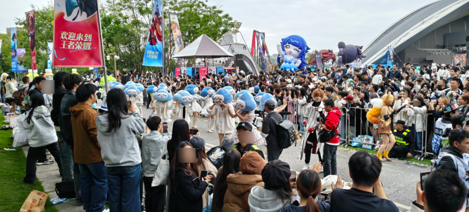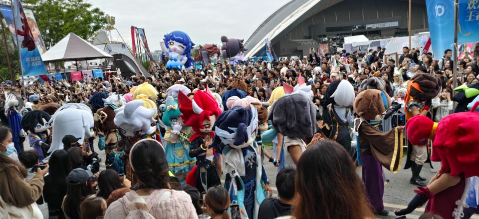 最让我震撼的,还是下午的巡游——你能看到来自王者IP的所有角色,组成了一波一波的阵列,经由coser们细心的演绎,与两道边上观众们热情互动,仿佛王者的世界观活了过来。