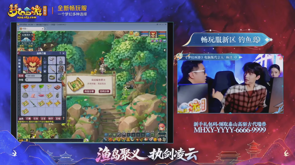 昨天,《梦幻西游》电脑版代言人杨洋不仅入驻了畅玩服新区【钓鱼岛】,还参与了【化境飞升】资料片的表演赛。在与微笑的交手中,杨少侠展现出无与伦比的战术思路,为观众奉献了精彩的PK画面。接下来,就带大家收看今天的梦幻新鲜事!