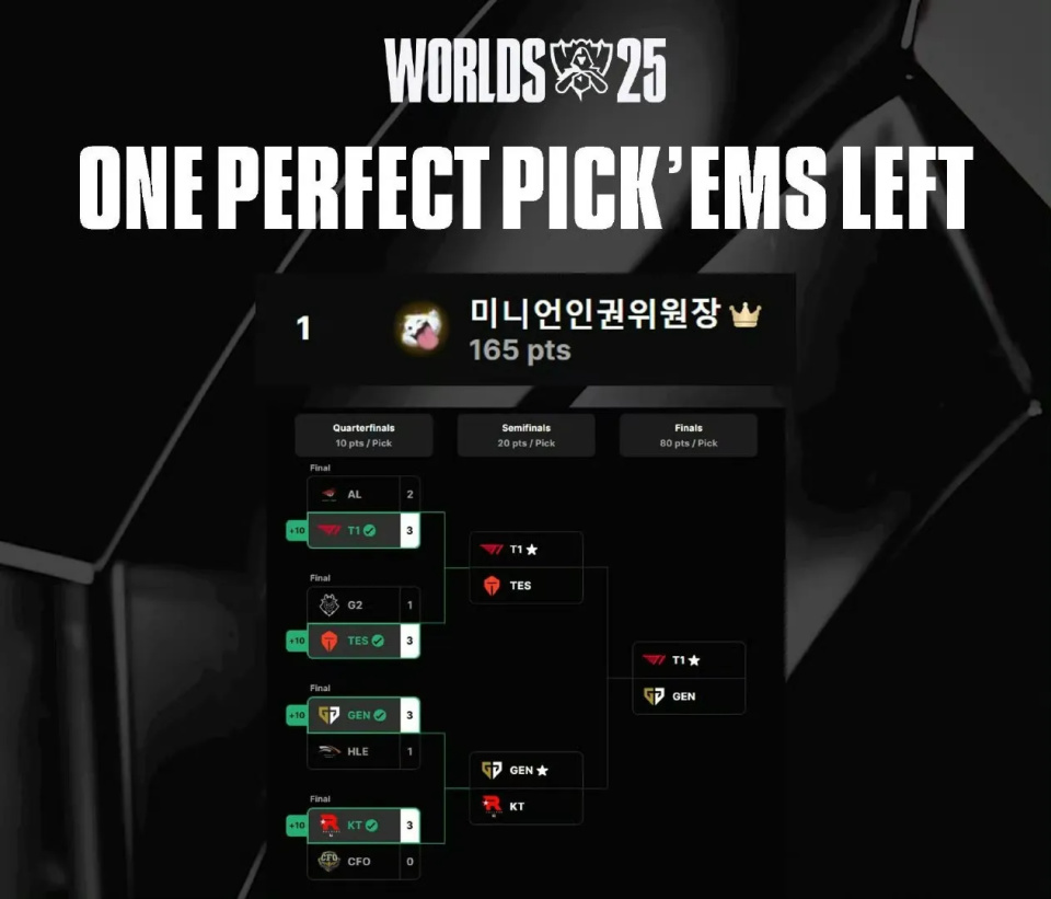 这场惊天大爆冷结束之后,拳头官方所发起的S15预测也随之相应结束了,参与预测的全球玩家已经全军覆没,没有任何一个人能够预想到gen战队会倒在这个位置。这可能就是电子竞技的魅力吧,无论双方实力差距有多大,双方的选手状态如何,总是会有那些意想不到的画面,就如同当年的rng战队和g2战队一样,谁也没想到,双方在打满五局之后,g2战队的perkz会用妖姬打破所有人的幻想。