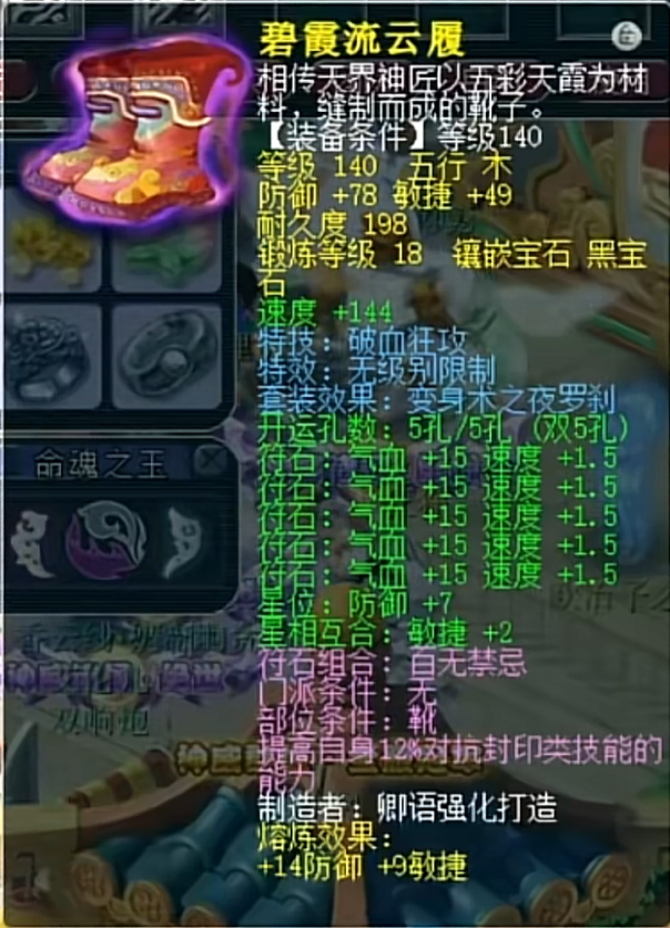 140级的防御+92,敏捷+58的破血狂攻+无级别限制的18段鞋子。