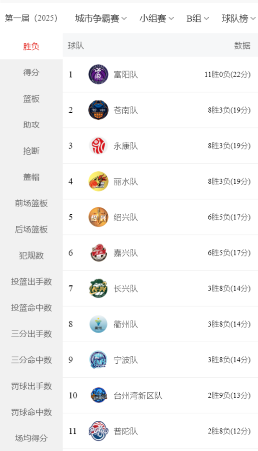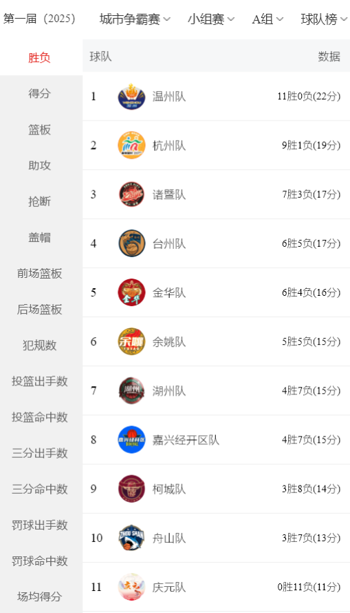 硝烟散尽,两支王者之师脱颖而出:温州与富阳双双豪取11连胜,以不败金身强势加冕A、B两组的“半程冠军”! 随着赛事愈演愈烈,究竟谁会占领小组前四席位,晋级决赛圈?让我们拭目以待!