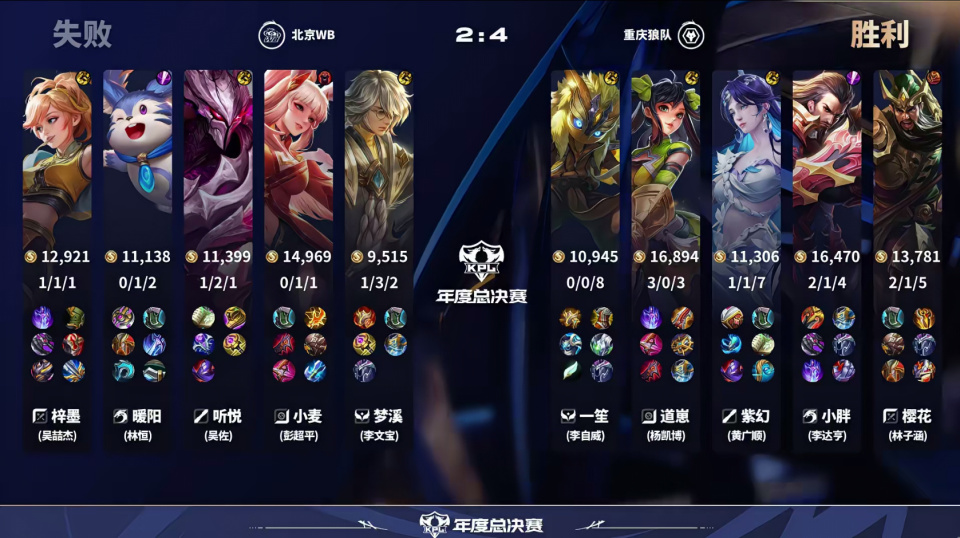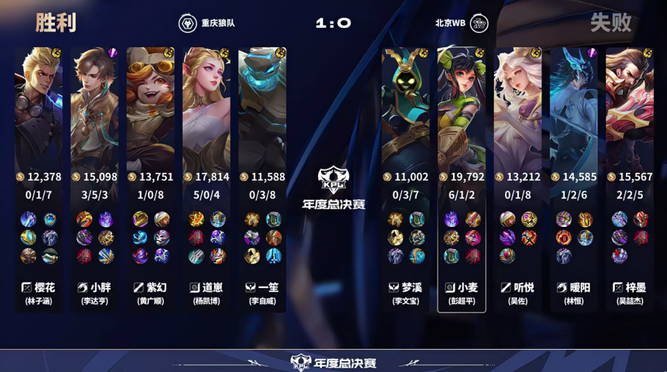 狼队4-2战胜WB,今年第一次赢WB(不算BO1加赛)就赢了个大的。在小胖状态一般的情况下其他人都能兜底,底蕴还是很强。尤其是道崽敢这么放狠话,也是来自于他的表现确实很出色,六局比赛只有第五局被切死过,沉淀了一个赛季,已经成为现在狼队的大腿了。