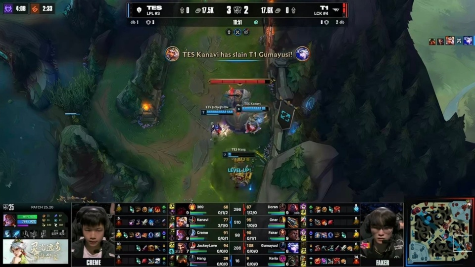 第一局每次龙团前,TES总有人打架,导致团战少关键技能,最后小龙只能拱手让人,第二把阵容知道龙团前,不能搞事儿了,但阵容没有开团,被T1一冲就散,决胜局最大的问题,就是Kanavi抢德莱文人头,导致AD发育落后,团战少关键输出,多兰塞恩往前一顶,完全就没人能打动。