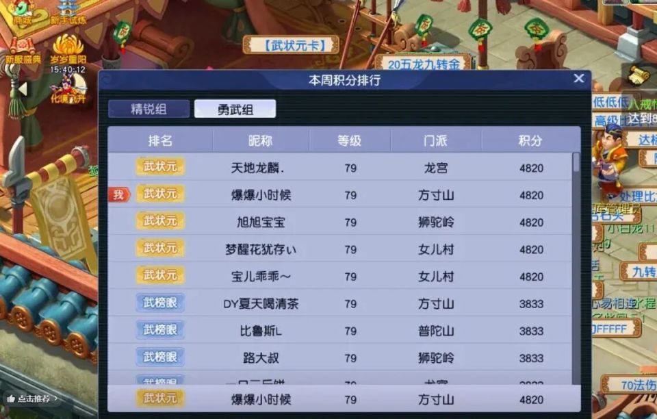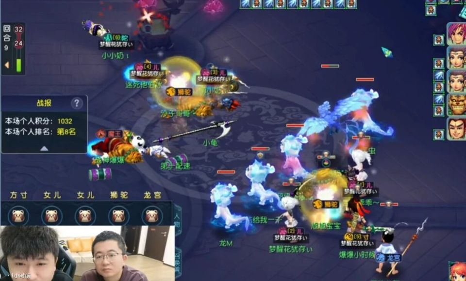 第三天的时候秦风一边担心被人点要躲,一边又要找刷分队伍,精神高度集中,经过3天的刷分+粉丝送分+前两天1000分,在积分稳稳第一的时候和萌大奶队伍开始了PK,阵法大克,1 2速全拿,物理1速,方寸还能卡封对面ST,对面五人倒地 局势大优,指挥觉得稳操胜卷,心里默喊:我要开始装逼了,换了一波感知宠,然后对面上端起来以后又不封普陀,血线回上来发现打不死了,最后一回合但凡方寸催眠中一个都随便赢,打完又来一句尽力了。
