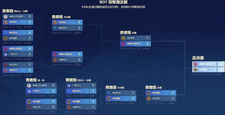 11月2日,2025KPL年总决赛败者组决赛,重庆狼队对战北京WB,这场比赛的胜负,将决定最后一张总决赛门票的归属,获胜的队伍将去往鸟巢,与AG争夺总冠军的归属,可若是输掉这场比赛,那么失利一方就将止步于此。