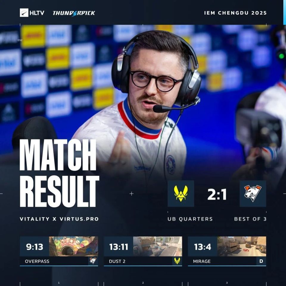 图二Dust2上tO0RO状态爆炸半场15杀(在大黄蜂面前)鹤立鸡群,VP连续双中路前摸匪家,半场守下7分。换边VP再拿手枪局将优势扩大至10-5,不过长枪局ropz在B大狙接连立功,而ZywOo也大狙回防拿下关键击杀,Vitality以双狙战术打出一波8-1铁血防守完成逆转。