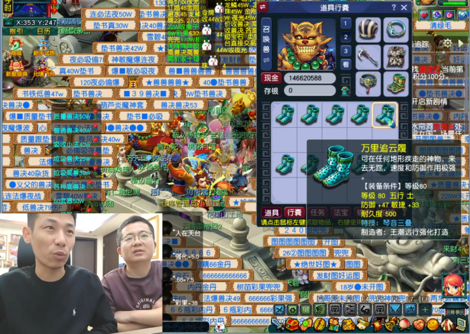 最后,宝哥还想为“齐天第一无级别头”点化出变身套。在用掉3枚附魔宝珠仍未成功后,他临时加价收购,甚至一度将价格提到5500元,却依然没能收到。当有商人趁机开价8500元时,宝哥果断收手。毕竟,再有钱,也不能破坏市场。