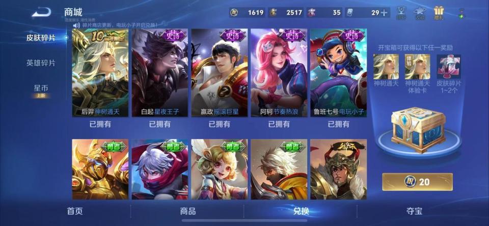 其实呢,王者荣耀本周的新版本中,将会是KPL年度总决赛的最后一周,8号的时候AG超玩会和狼队,将会在鸟巢进行总决赛的对局,不知道你们支持哪一队呢?话说回来,王者荣耀本周是会有新皮肤上架的,同时碎片商城也将会迎来更新。到时候,后羿的神树通天皮肤将会下架,所以有178个皮肤碎片的玩家,要记得兑换哈。除此之外,王者荣耀另外四款史诗皮肤,有多余的碎片也是值得换,尤其是鲁班七号的电玩小子哈,人家可是拥有多套星元皮肤啊。而说到本周的KPL年总比赛,那么就不得不说说即将登场FMVP传说皮肤了吧?