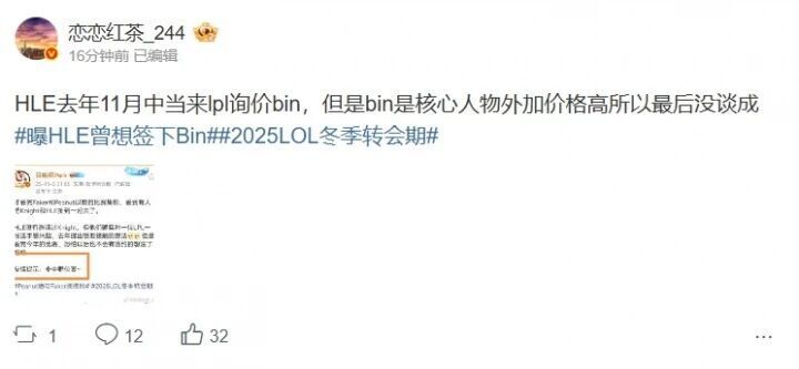 世界赛还剩最后一场决赛,但已经和LPL没关系了!LPL各支队伍都在备战转会期,今天就来聊聊转会期相关消息。韩援遍布全世界,LCK会用其它赛区选手当外援吗?有的,DRX的下路LazyFeel,是越南籍选手,是LCK史上的首个外援。今日就有爆料,HLE去年11月中来问过Bin的价格,但Bin价格太高了,所以没谈成。Bin虽然今年黑点很多,但有一说一,去年的Bin确实打得不错,MSI亚军+世界赛亚军,多次在BO5淘汰LCK队伍,世界赛决赛和Zeus打满5局,只输一点点。当时HLE还不知道他们能签下Zeus,所以来尝试一下Bin,是合理的。但是Bin肯定不会去LCK。Bin是战狼,而且留在LPL,薪资高,环境熟悉,训练累了还能去商K放松一下,何苦去异国他乡打工呢?Bin还不会说韩语。如果把LCK比作NBA,其实也有中国选手去NBA打球,以后LOL会不会有中国选手去LCK当“中援”呢?