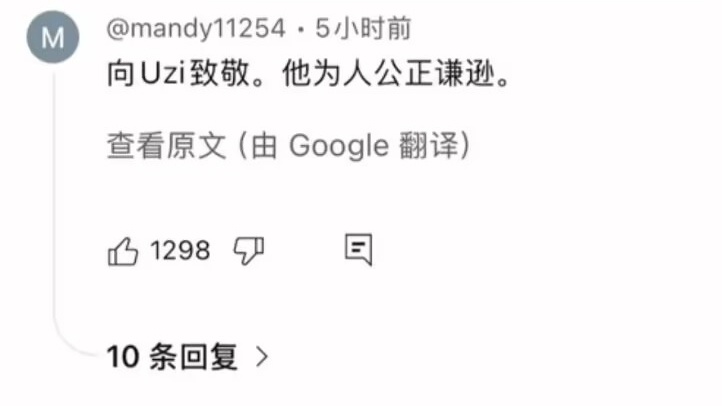 最后一个选项,是让乌兹选自己或者尺帝,他选择了后者,外网观众们,看到乌兹的评选之后,都表示:Uzi为人公正谦逊,向他致敬,这种评选确实挺搞的,如果乌兹选自己,那估计又是一波大节奏,如果按成绩来说,Bang、小吕布,都是第一AD,但很多观众,都觉得Ruler统治力强。