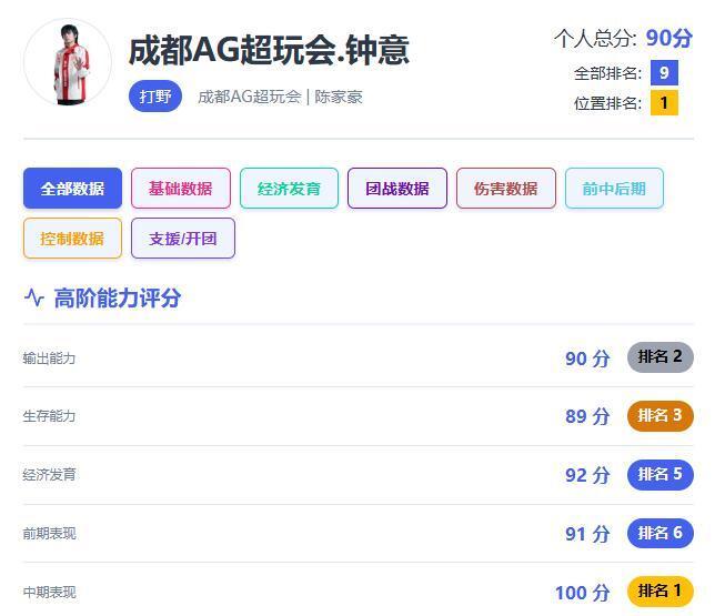 从数据和局内表现两个方面来说,AG钟意都是目前联赛中的第一野王,而小胖确实应该好好调整自己的状态。