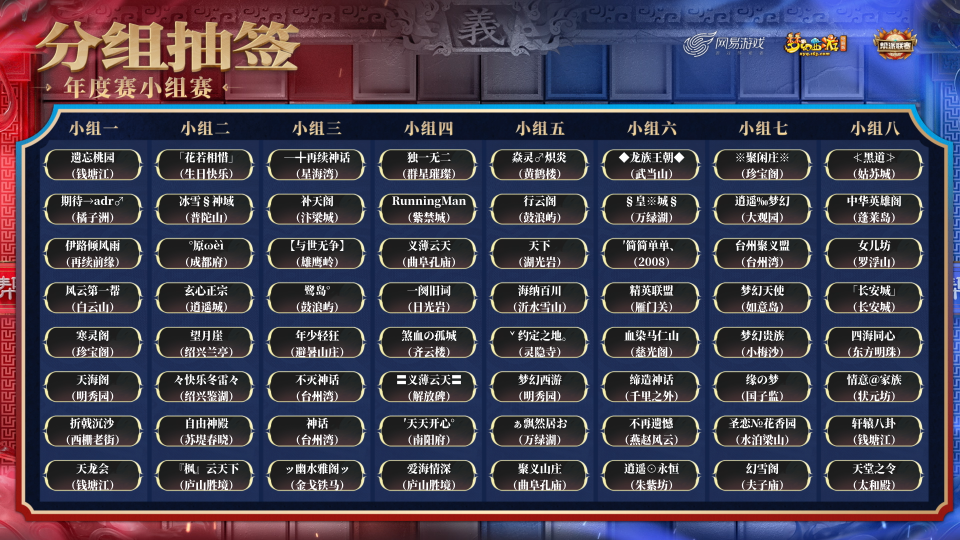 2025帮派联赛年度总决赛现已火爆开启!经过一整年的激烈角逐,共有64个帮派成功入围。本届赛制也迎来全新升级,分组规则参考了足球赛事的抽签方式,共设8个种子池。