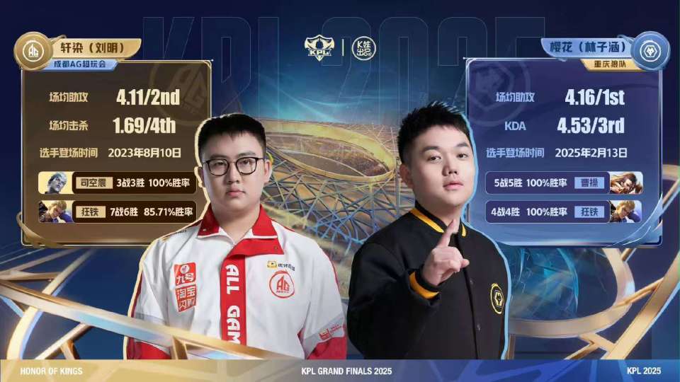 边路位置轩染和樱花在线上应该也不会有太多对抗,两人都不是爱上头的选手。本次年总轩染的个人画面不多,主要也是因为AG整体实力都比较强,而樱花和狼队的磨合显然超出了预期,似乎这就是狼队要找的边路答案。曹操是轩染的本命英雄,但这次年总他的曹操胜率并不高,拿出来几次效果并不好,这又是个绕不开的英雄,必须要及时调整。樱花是第一次打决赛,还是在人山人海的鸟巢,是紧张还是兴奋就不好说了。