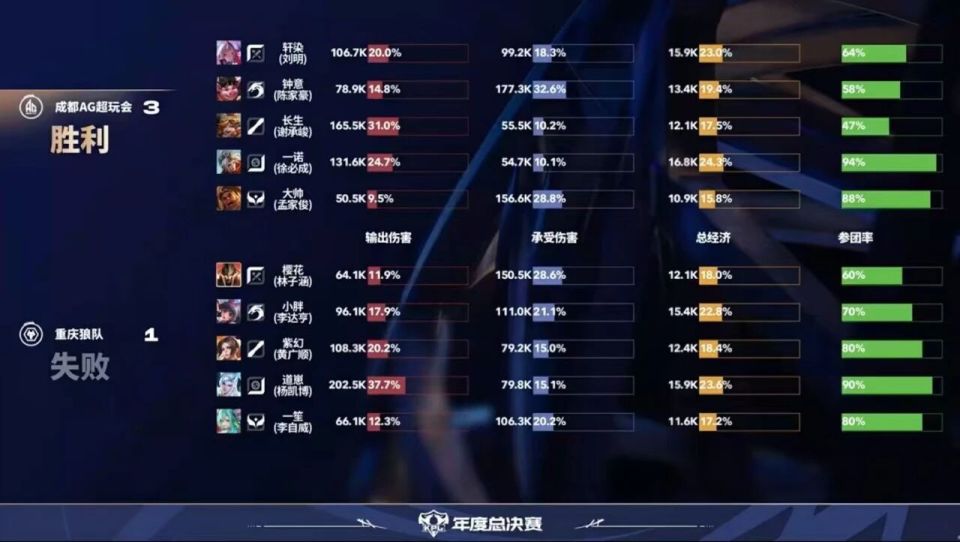KPL赛事体系六连冠!成都AG超玩会获得2025KPL年度总决赛总冠军!成都AG超玩会.一诺(徐必成)获得年度总决赛FMVP!
