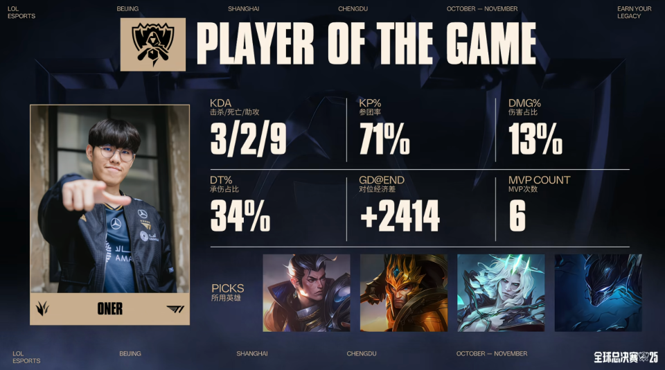 恭喜T1拿下英雄联盟S15世界冠军!3-2击败KT,Faker实现6冠王荣誉