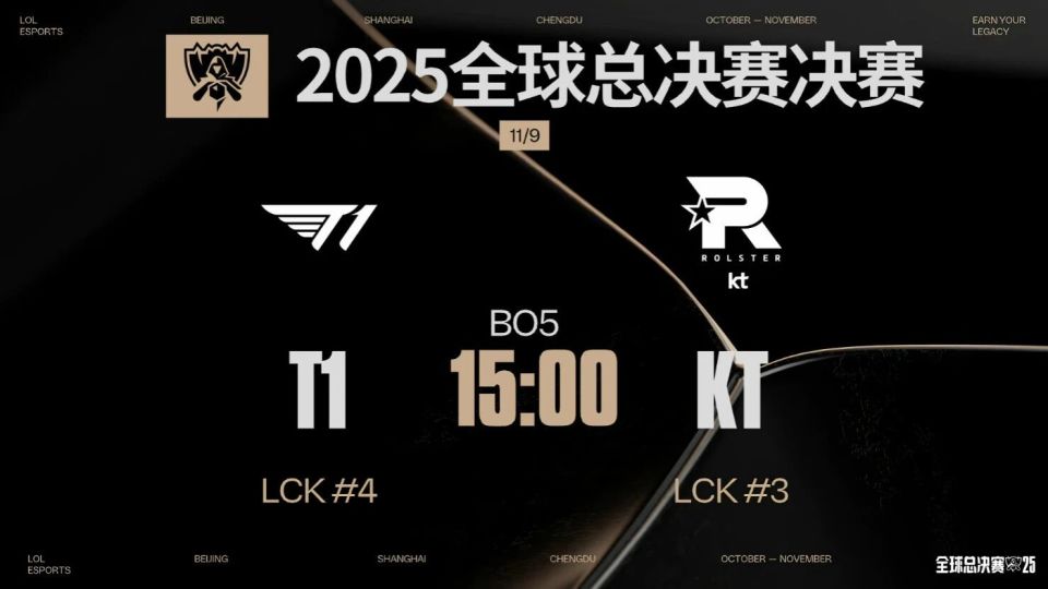 T1击败KT,夺得S15全球总决赛冠军!加冕六星王朝,T1三连冠