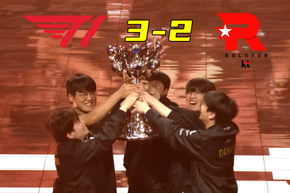 第四局,T1再次创造了奇迹,明明每波龙团局势都不利,可最终却都能将小龙控到手,甚至连厄塔汗也是如此。在这般韧性之下,T1也是成功追平比分,迎来了第五局。有一说一,只要比赛来到第五局,T1基本就稳了,论决赛BO5的经验,T1是绝对的大心脏。这不,第五局T1直接给KT打了个1W+的经济差,而Doran的青钢影就算是尽力“拉垮”了,也抵不住队友是真的C啊,最终也是在guma女枪的闪现爆A下,成功3-2击败了KT。