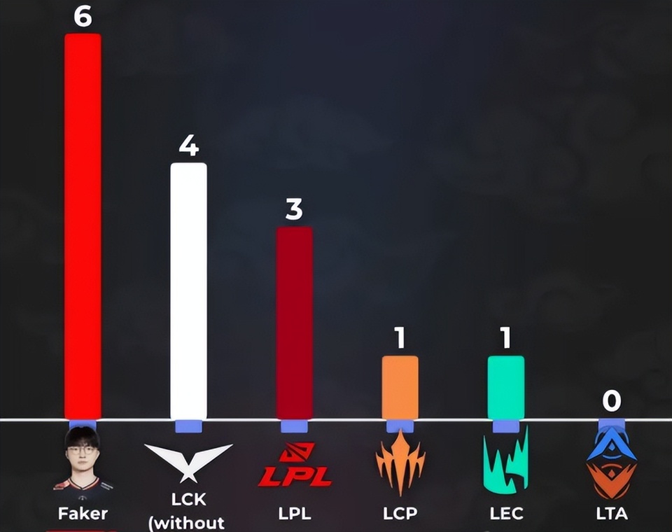 也就是这番话,让很多LPL的粉丝听起来真的是太扎心了,也只有Faker有资格说出获得世界赛冠军并不难。这要是换成其他选手,说出这番话必然会遭到反噬。仔细想想Faker的这番话,确实让整个LPL都有点汗颜了。Faker他一个人就获得了6次世界赛冠军,LPL总共也就获得了三次世界赛冠军,他正好是LPL的两倍。一个人等于一个赛区的两倍,这是多么一种夸张的数据。