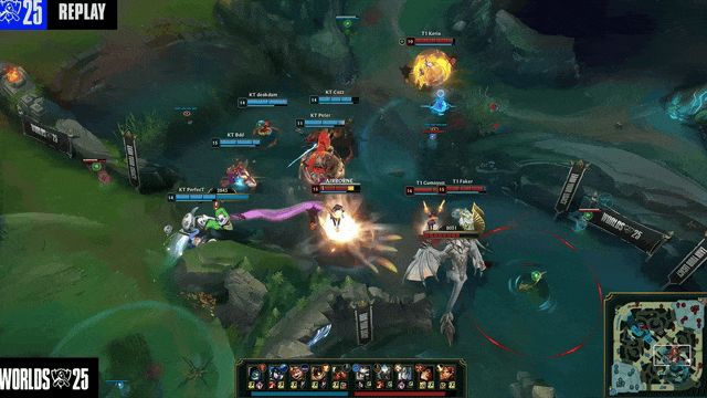 单就总决赛而言,开局T1先下一城,随后连遭KT重拳反击——从BP到战术执行,连续两场酣畅淋漓地正面完爆;整体气势被完全压制的情况下,如果不是意料之外的X因素轮流降临,恐怕故事的主角早就提前换人了。