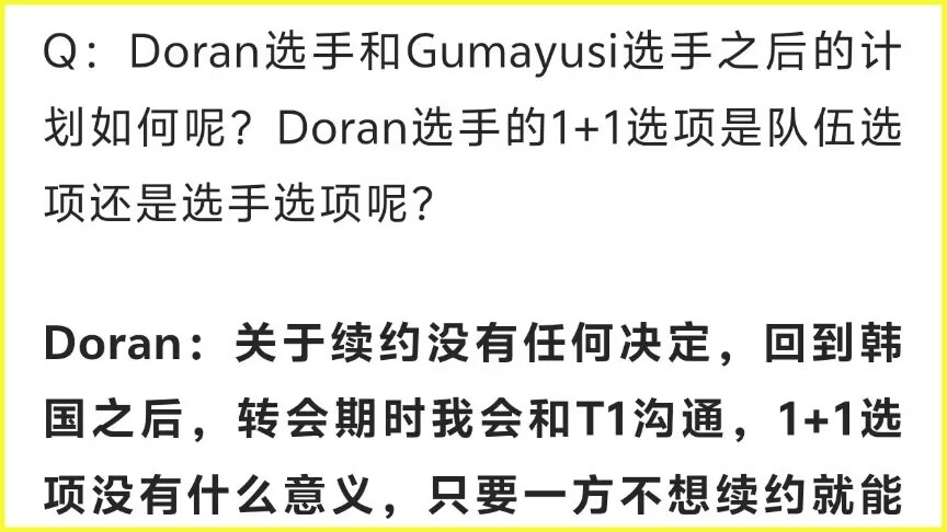 T1的话大概率也是原班阵容,在夺冠之后,上单和AD,在采访里,就已经谈过续约问题了,小吕布的原话是:我会以去年续约1年的心态,去参加今年的转会期,多兰则表示:关于没有任何决定,回到韩国之后,转会期会跟T1沟通,1+1选项没有什么意义,只要一方不想续约就能结束。
