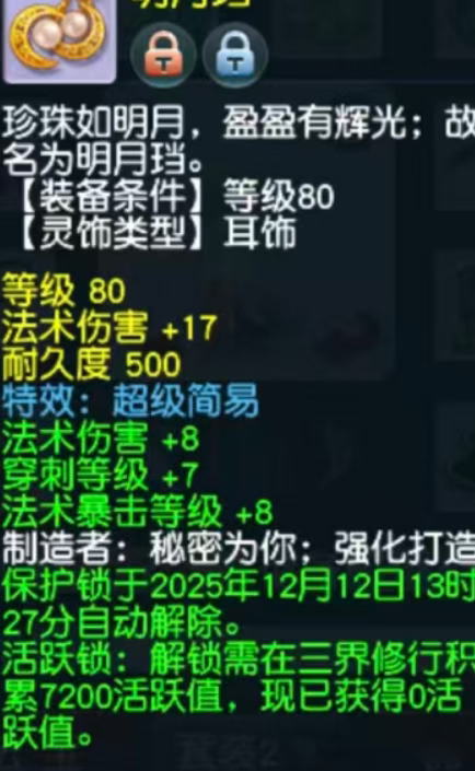 然而仔细一看,却发现其中一条是与其他属性毫不搭配的“穿刺”。倘若这条属性换成法伤或法暴,它便能一跃成为神级耳饰。
