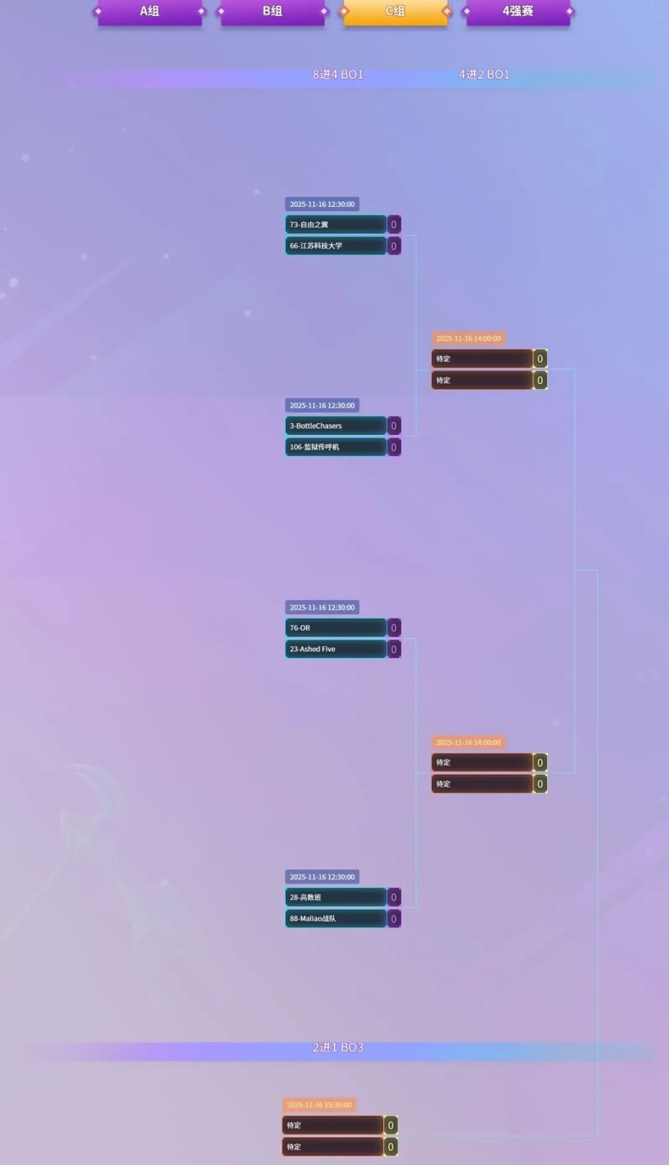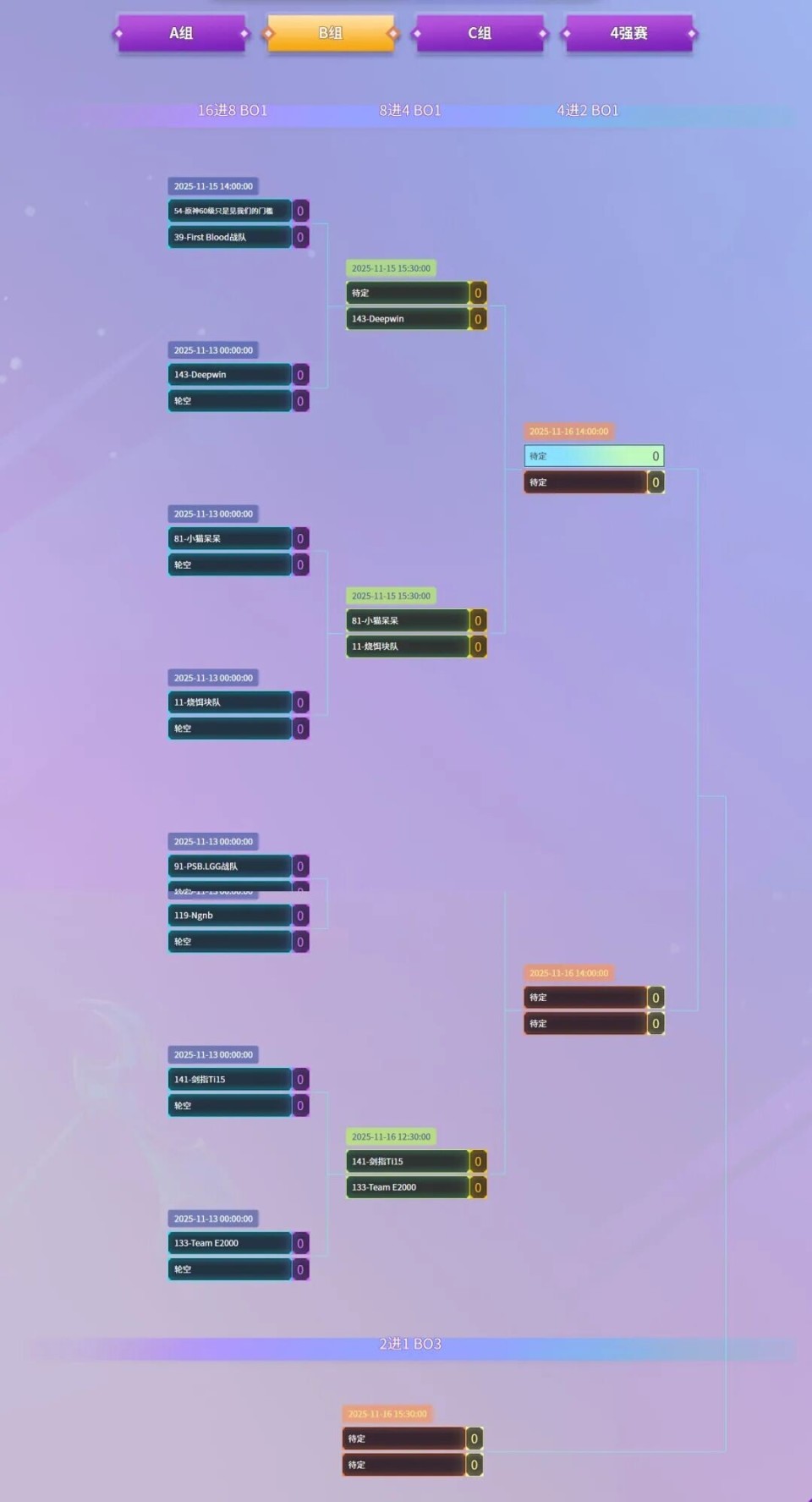 踢馆赛道的A组和B组各9支队伍,C组8支队伍,A组与B组海选11月15日开始,C组11月16日开始。每组的出线局为Bo3,其余场次为Bo1,非常考验队伍的临机应变。