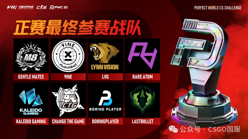 11月13日-16日,PWC S2正赛在上海进行最后决战。Gentle Mates、9INE、LVG、RA、Kaleido、Change The Game、Last Bullet和BORING PLAYER共8支战队,争夺35万总奖金和冠军荣誉。