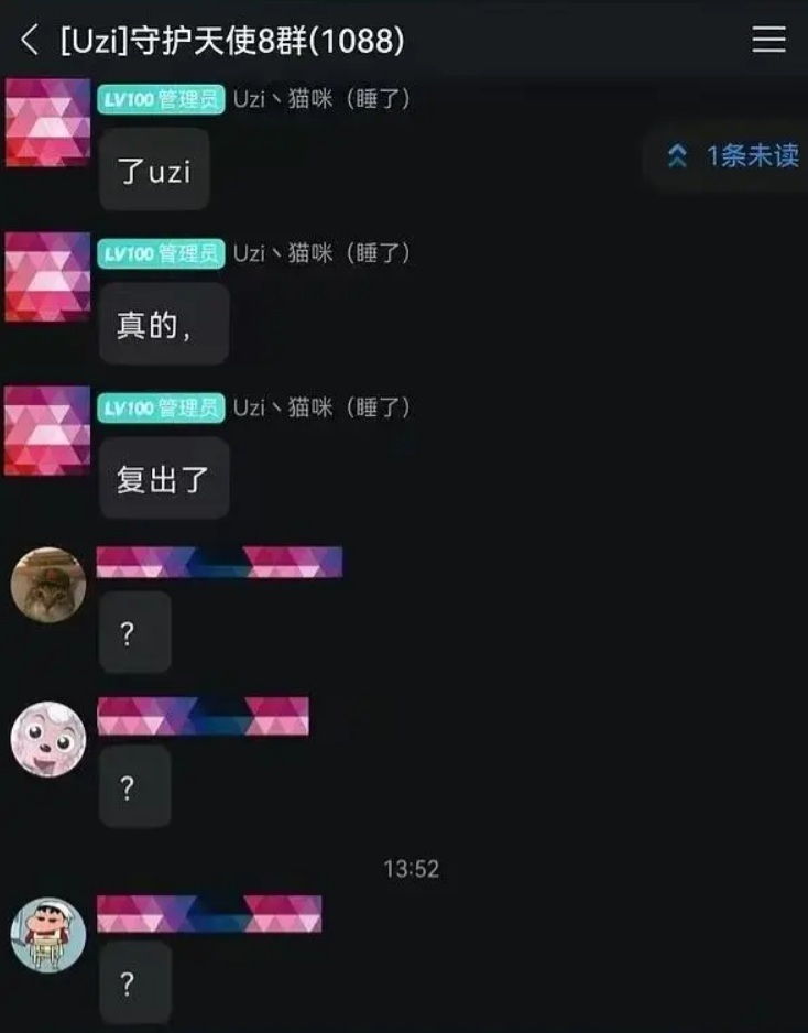 后面又出现了新的爆料,是DB的粉丝群管理爆料说Uzi真的复出了。