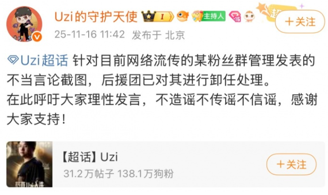 Uzi后援会率先辟谣