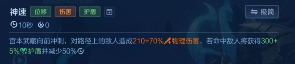 再加上二技能的护盾还跟额外生命挂钩,也让宫本武藏可以通过黄盾+血魔之怒来弥补数值上的差距,变得又肉又有输出。
