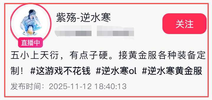 《逆水寒》作为网易2018年上线的现象级,其装备数值打造的迷人魅力,吸引众多土豪让主播帮助打造每一件装备的属性,当主播在数十次失败后终于打出满属性装备,屏幕上跳动的不仅是游戏数值,更是观众的情绪共鸣。