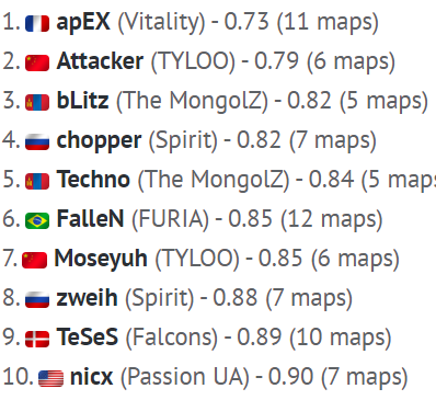 趣味数据:BLAST S2 rating榜及决赛对位数据