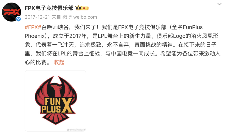 LPL回购FPX电子竞技俱乐部席位,英雄联盟S9冠军发文告别