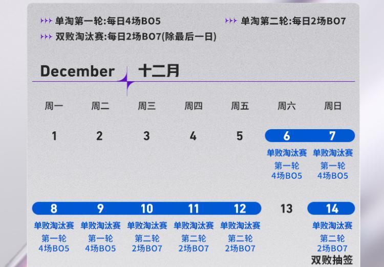 除规模升级与赛道扩容外,本届挑战者杯赛再次对赛制进行了创新升级,保留“挑战者的祝福”BUFF的同时,全新引入单败淘汰赛机制,12月6日至12月19日四天时间,每一天都有4场BO5的比赛开打,而在12月10日至12日,淘汰赛的第二轮比赛中,每天会有两场BO7开打。