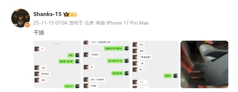 所谓的“活”并不是某种玩梗式的隐喻,而是实打实的搬箱子、扛货物的工厂劳动,四个小时后,他再次发动态:“下班了,活干完。”语气轻松得仿佛只是去体验了一趟全新的生活方式,虽然粉丝们第一反应是“Shanks不是缺钱吧?”,但其实稍微了解他的人都知道,他绝不会因为经济压力去从事这类兼职。