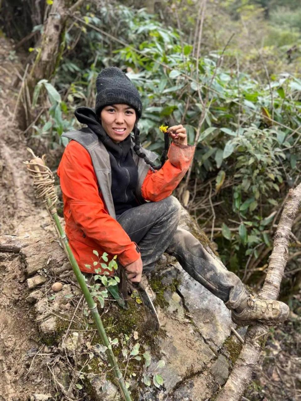 但她始终淡定自若,在山中采野果、挖野菜充饥,还乐观表示“越是绝境,越是冷静”,靠生火解决食物问题,甚至调侃“吃香菇就像吃肉一样”。
